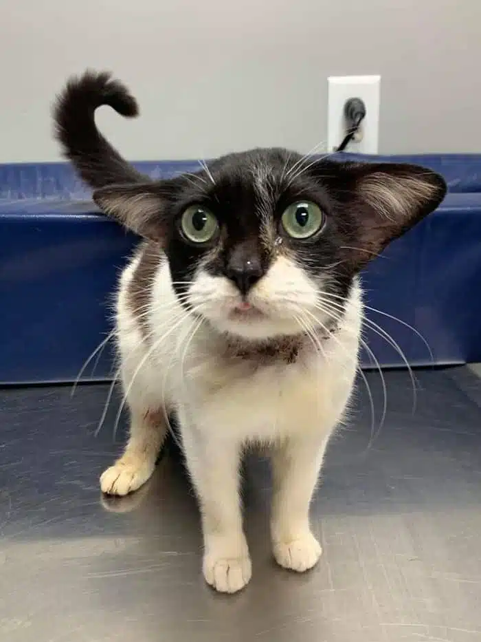 C'est la clinique vétérinaire de Caroline du Nord qui a trouvé le petit animal. Mais personne ne sait comment il a été abandonné. Jana Aviles, une employée s'est occupé du petit chat dont elle est tout de suite tombée amoureuse. « J’ai rencontré ce chat adorable au travail hier » a t-elle écrit sur Facebook. Puis a ensuite détaillé l'histoire de ce mini Yoda. « Une équipe de sauveteurs nous l’a amenée, étant blessée. Elle est trop mignonne non ? » a confié Jana. En voyant l'animal, les internautes sont tout de suite tombés sous le charme ! Il faut dire que ce chat est très attendrissant. De grands yeux, des oreilles tombantes, le charme à directement opéré avec l'équipe de vétérinaires. On ne doute pas qu'il trouve rapidement une famille !