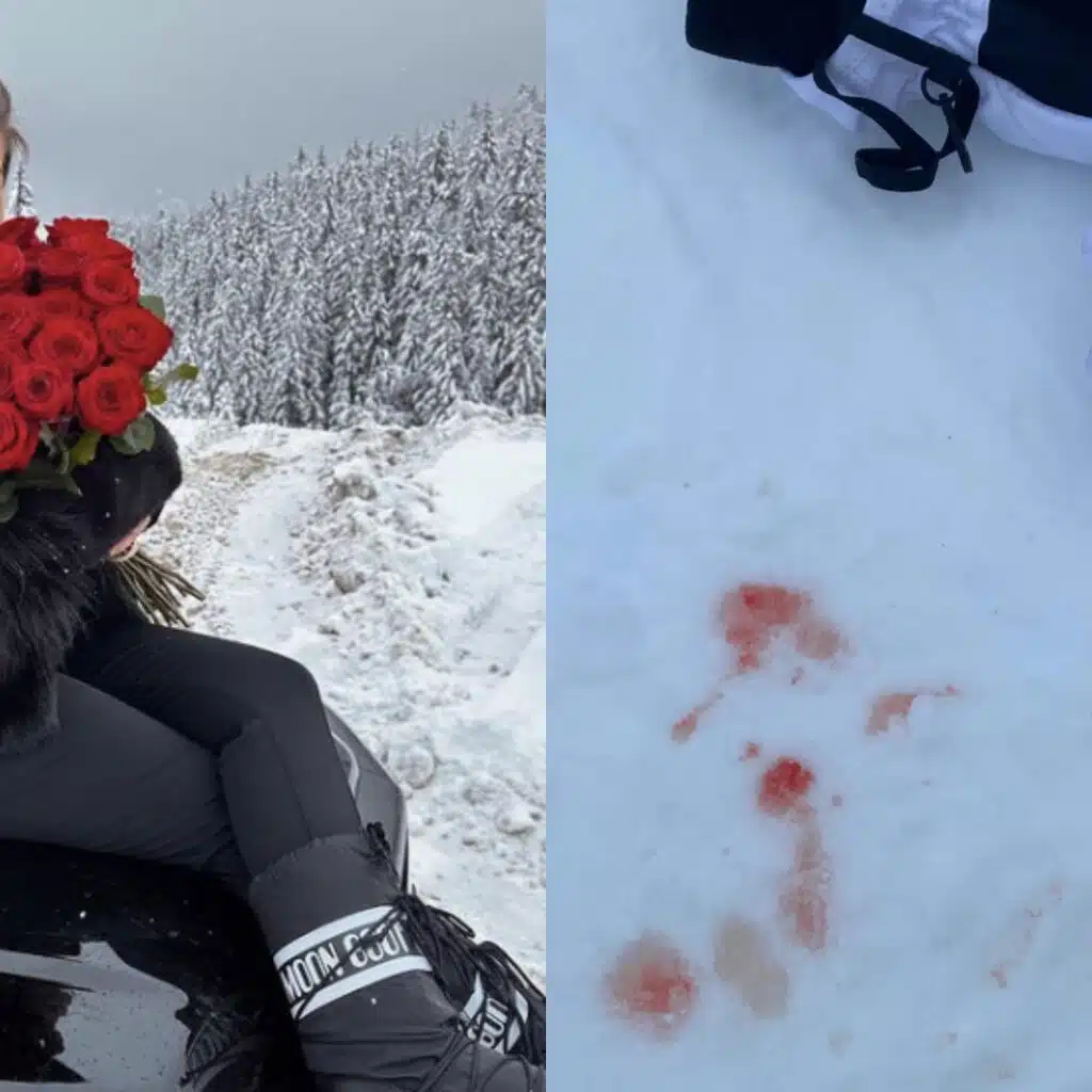 Dans la story suivante, Kamila s'est filmée à terre, avec du sang qui est tombé sur la neige. La marseillaise est tombée et s'est fait très mal au niveau de la lèvre inférieure. L'épouse de Noré a balancé :
